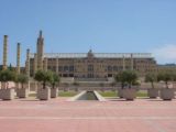 vormt, ondersteund door 100 zuilen: de Griekse zuilenzaal. Van op het plein heb je een